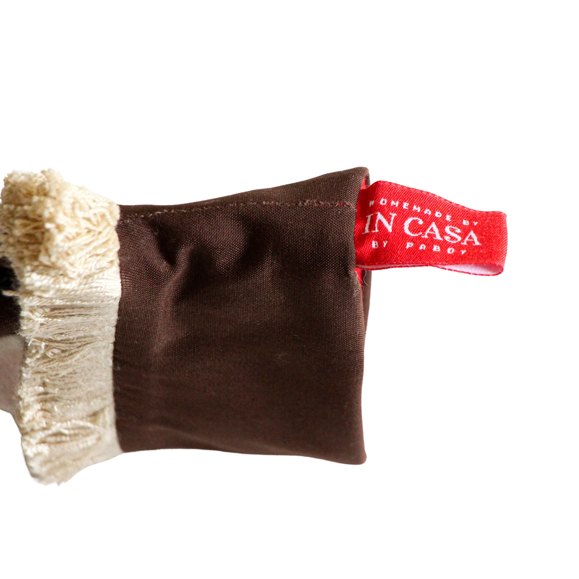 Dark Brown and Cream Patchwork with Cream Fringe Christmas Stocking