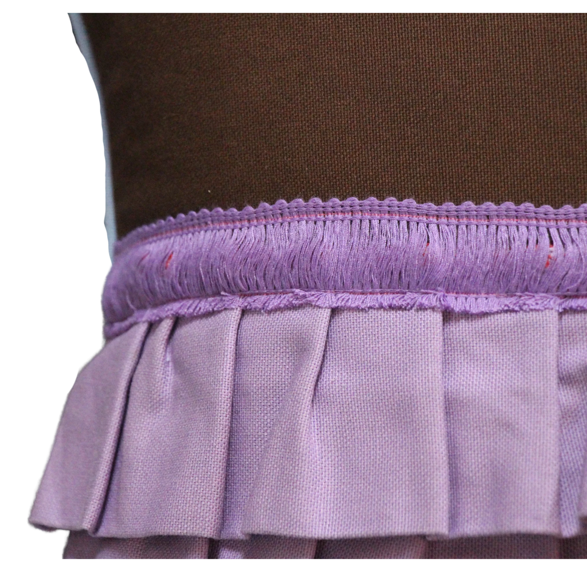 Dark Brown and Lilac Ruffle/Fringe with Blue Piping