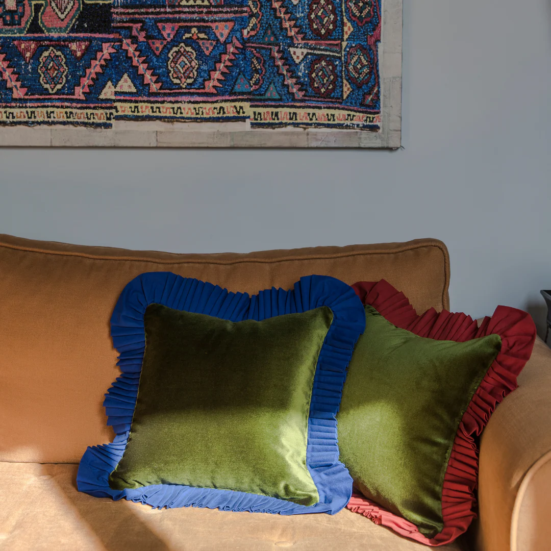 Ruffle: Green velvet & Red ruffle