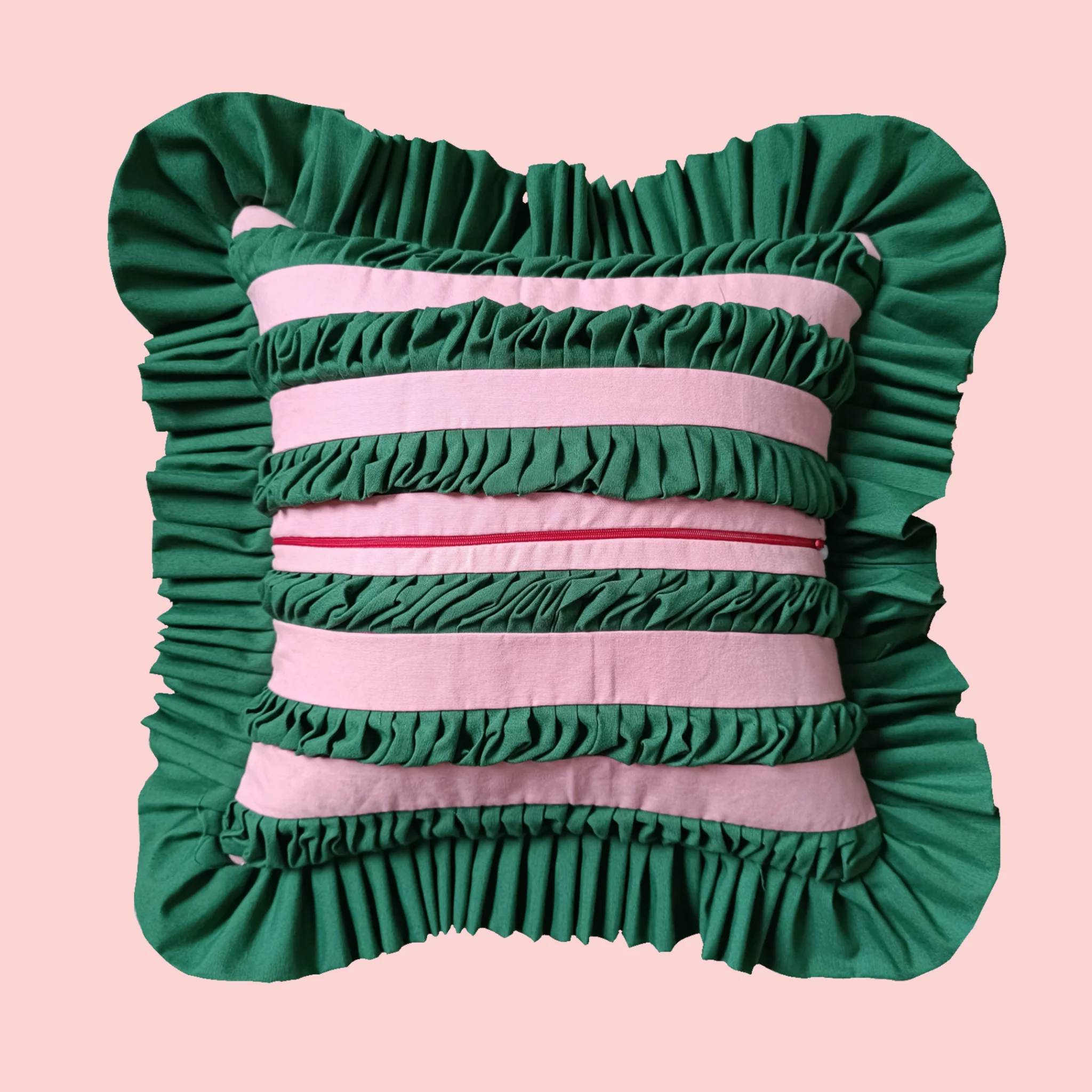Special Stripes. Pink and Mango Green with Mango Green Ruffle